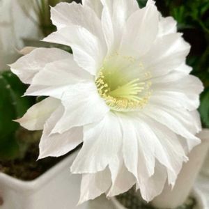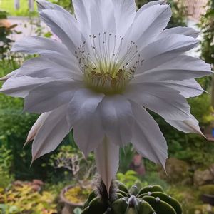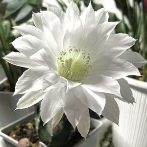 また、王冠短毛丸の花が咲きました。まるで造花のような大きな白い花。2回も咲かせるとは‼️