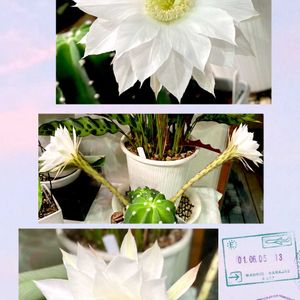 大きなお花が咲きました 小さな毛の塊が出てきたと思ってたら どんどん伸びて蕾の形になってきました。日に日に大きくなり ついに開きました! 夜の10時頃から開き始めて翌日12時頃まで咲いていました。その間部屋の窓辺に置き づ〜っと見ていました🩷🤍🤍🤍🤍🤍🩷