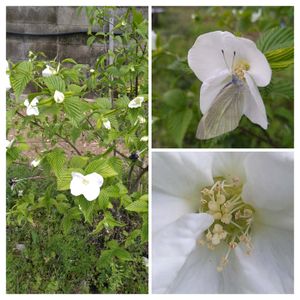 おはようございます。 今日は良い天気になりそうです。 庭のシロヤマブキが咲いています。 チョウが朝ごはんを食べに来ました。