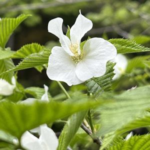 こんにちは~☁ 予報通り雨が降り出しました🌂 ラックスが終盤になり、 お庭は白い花木たちのリレーが 始まりました𓂃𓂂ꕤ*.゚ ①枝いっぱいにお花が付き 重そうなオオデマリꕤ.。 これから白へと咲き進んで 行きます♪̊̈♪̆̈ 去年秋まで繰り返し咲いていたので、春は咲くのか心配しましたが、意外にもこの咲きっぷり\(*ˊᗜˋ*)/ ②ハナミズキ白 枝のてっぺんに咲いてお顔が 見えません😂 ③ジュンベリー 今年は実が沢山採れると良いなぁ🤔 ④シロヤマブキ チラホラ咲きだけど、お花も葉っぱも 好き🤍🌿😍 ⑤タンチョウソウ 山野草は得意では無いけど、毎年 可愛く咲いてくれます𓍼𓅯𓂃𓈒𓂂𓏸