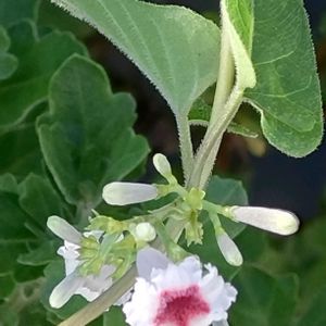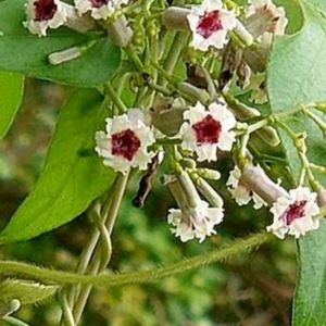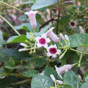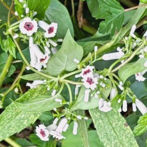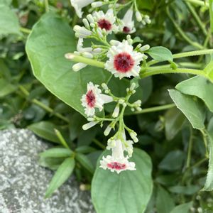 9月8日 今日のお花 ❀🤍🩷🌿 ヘクソカズラ 🌿🩷🤍❀ 花が可愛くサオトメバナの別名も、悪臭のインパクトで、気の毒な名前に。 道端や河原に多いつる性で、葉を揉むと思わず顔をしかめるような悪臭があります。名前の屁や糞もそこからきてます。しかし花は名前に似つかないほど可愛らしく、白い釣鐘形で、中心付近に赤い模様があります。赤い模様がお灸をすえた痕に見えるのでヤイトバナ、花が可愛いからサオトメカズラともいいます。 花期 8〜9月