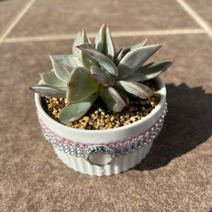 今日はホワイトデー 夫から多肉を貰った ココットのリメ鉢にビューティーリリー リユースショップで買った器に赤いルエラ植え替えしました^ ^