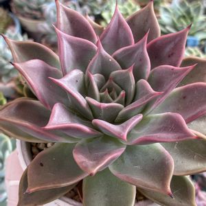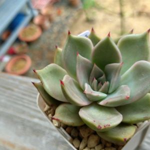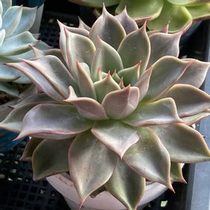 曇りのはずですが、雨がパラパラと☔ 明日からの晴れ間が心配です😅 リラシナシリーズ。 ビューティーリリー。 リラシナ✕レッドエボニー。 エアーマジック産。 これから暗めの赤に染まる大型種。 春に2周葉をもぎりました。 葉挿し率もリラシナらしく高い😁 弱点といえば「大きくなりやすい」こと😅 小さく締まった苗が好きなので…。