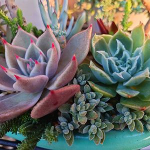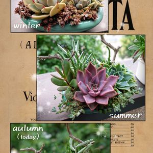こんばんは🌛😊 ①②③寄せ植え。 左のビューティーリリーは2年連続で梅雨時に盛大にジュレて、更に今年は茎もやられ、茎ほじくり返してベニカして...めっちゃ手をかけて復活。 紅葉してるのはストレスで、元気になってきて成長点はみどりん(›´ω`‹ )トホホ… 今からみどりとかやめてー( ;ᯅ; ) 右はおつとめ品からの葉挿しっ子。 当然名無し。これもジュレ祭りを繰り返し、ここまで2年かかりました(長すぎ) 葉がうねってるなーとはずっと思っていたけど、最近フリルが😆❤ 醜いアヒルの子状態( •ᴗ• *)))ゎ‹ゎ‹ 2人仲良く復活寄せ。 また来年ジュレるんでしょうけど、それまで元気でいてください。