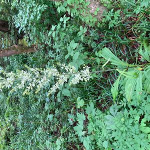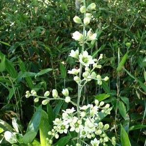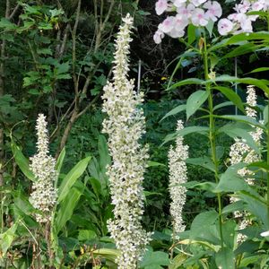 バイケイソウ シュロソウ科シュロソウ属 多年草 和名は花がウメ、葉がケイランに似ていることに由来する。 北海道〜九州に分布。 山地から亜高山帯にかけての林内や湿った草地に生える。 花期6〜8月 開花期の草丈は0.6〜1.5m 葉は長さ15〜30cm、幅10〜20cmの広楕円形から長楕円形でその先が尖る。 葉はこの姿がオオバギボウシやギョウジャニンニクニンニクとよく似ている。 全草有毒である。 花は直径1.5〜2cmほどの緑白色の花を多数付ける。 茎の上部に大形の円錐花序になる。 6枚の花被片は長さ1〜1.5cmほどの細卵形でその先は尖り、雄しべはその半分程度の長さである。 花期6〜8月