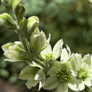 おはようございます😊 Mr. マーさんの 🏷️素敵な水曜日 🏷️オシャレな粋曜日の花 さっちゃんさんの 🏷️白い水曜日♡(ギリギリ入れてください🙏) かねーちゃんさんの 🏷️白い貴婦人✨️(こちらもギリギリ入れてください🙇♀️) 廣花奈さんの 🏷️秘密の花園♡ しもむさんの 🏷️愛の花♡ 🏷️ありがとうの花❣️ 🏷️花咲く乙女たち♡ に参加させていただきます♪ 戸隠と周辺のお花たちܾ ܾ 𖥧𓇣𖦥𖥧𖥣 その③ 「バイケイソウ🤍💚☘ ̖́-」 戸隠でバイケイソウを見たのは 初めてかもしれません 上高地で見たミヤマバイケイソウは 緑が濃かったけど バイケイソウは白に近い薄い緑🤍💚 この頃は咲き始めのようでした 花径20mm 雄しべは6本で 柱頭の先端は3つにわかれています (picからはわかりづらいですが💦) 全て両性花 花被片の縁には毛があり 花披片の裏側にも毛が密生しており 花茎にも屈毛が見られます 花は美しいと思う🤍💚✨️ 見る分にはいいですね〜😉 もちろん全草毒☠️💦 コバイケイソウのように 当たり年と そうでない年があります 今年は当たり年かな〜? シュロソウ科 分布 北海道〜近畿地方以北 四国 九州 山地~亜高山帯の林内や湿った草地 7/9 撮影📸 それではみなさん♬.*゚ 今日もステキな1日を お過ごしくださいませ🍀*゜✨ ✩*⋆°ෆ*⋆°ஐ*⋆°✩*⋆°ෆ*⋆°ஐ*⋆°✩