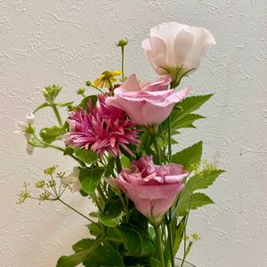 今回のお花 トルコキキョウ ガーベラ ヘレニウム オキシペタリウム ミシマサイコ キイチゴ