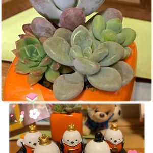 ひな祭り🎎 ですね〜💦 冷たい雨の一日でした☔ もう夜になってしまいましたが、 花友さんからいただいた、 『シマエナガちゃんお雛様と、 多肉植物の寄せ植え』 スーパー…ズミヤでお買得品でした🎶😁