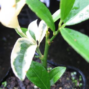 こんな風に、緑の葉の”マイヤーレモン”に、斑入り葉が!! どうなるかな、ちゃんと大きく育って見せてね。