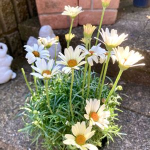 ローダンセマム ムーン🌼 寄せ植えしたけどなかなか咲かなくて、今になって最盛期状態です😅 斑入り葉イチゴ(観賞用なため🍓は期待できないようです😓)、リシマキア オーレア、そろそろ終わりに近いフリル咲きビオラ エスカノールが頑張っているのですが、ビオラが終わったら何を植えようか、それともいっそのこと縮小して植え替えるか…と考え中です🤔💦