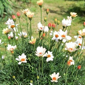 ローダンセマム ムーン 2年目の株になります 昨年の猛暑で株の半分くらい枯れましたが何とか咲いてくれました🍀
