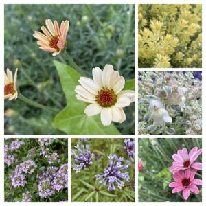 ローダンセマム ムーン🌙✨ 淡いアプリコットが優しげです 咲き進むと白に色変わりするようです 咲き進んだ白いお花とアプリコットのお花が咲き乱れるのを想像するとワクワクします•ᴗ•♡