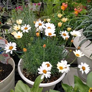たくさん花をつけたローダンセマムの大株に感動したので家にも迎えてみました たくさんの蕾が控えていて開花が楽しみです