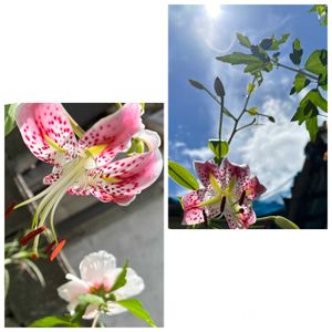 今日も暑い1日になりました🥵 ほんの少しの時間⏰ そろそろかなぁとカノコユリに ズームイン➰☝️ さすがに暑くて日傘を差す オッさん😅➰ カメラを2つ📷📷と水分に タオル➰🎵 タオルは濡らしての往復20分🥵 可愛いカノコユリが出迎えてくれました🤗➰☝️ 一つ白花も 皆さん雨の潤いで 元気に可憐に➰🌸 さぁ後は自宅の日陰でのんびり 楽しまなきゃ😆➰🎵🎶 カノコユリ🌸