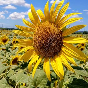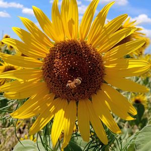 おはようございます🤗 今日のお花🌻ひまわり🌻 三枚目はバッタとハチのコラボです。 ひまわりの丘公園にて🌻