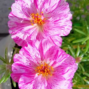 おはようございます🤗 ✨松葉牡丹✨ 八重咲きの松葉牡丹が開花しました。 一株からいろんな色合いのお花が咲きます。 その中で絞り柄がとっても可愛いです😊