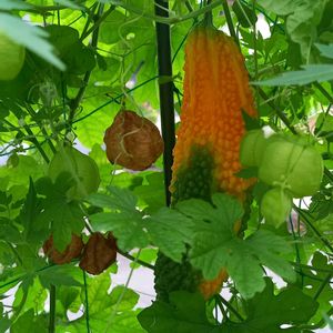 1️⃣熟したゴーヤ 2️⃣コキア 3️⃣グリーンカーテン?グリーンフェンス😂 左端にルコウソウと朝顔もあります。ゆっくり成長中です。 食すより、日除けメインのゴーヤ、物価高のおり、もったいないですね。 お浸しか、サラダにしましょう。