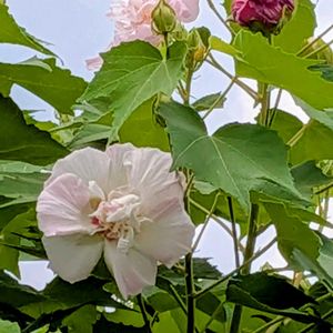 酔芙蓉が咲く季節になりました。(AM11:30撮影) 白から薄ピンクに変化してきてます。 🏷️火曜日はピンク色の花 🏷️火曜日はピンク色気分