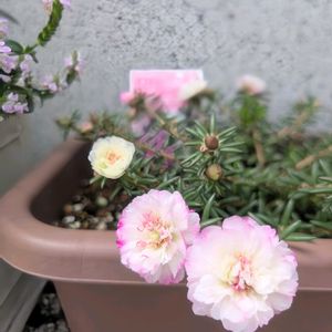 こんにちは(*´▽`*)ノ 今日も お暑いですᐡ𖦹 ·̫ 𖦹ᐡプシュ~ 1⃣八重咲きの可愛い マツバボタンが またまた咲いてきたよ〜💞 2⃣ 《すぐ楽》 ミリオンベル プチホイップ(2色植え🤍❤️) モリモリ…(~_~;) じらされております💦 3⃣コラージュ ✼••┈┈┈┈┈┈┈••✼