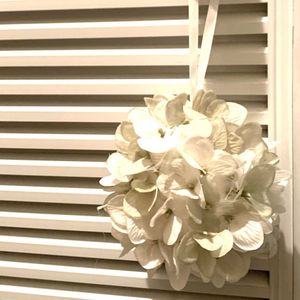 外があまりにも暑すぎて家の中でアナベル仕事 一度やってみたかったフラワーボールを作りました 百均のサンキャッチャーを下げてキラキラ感をプラスしました