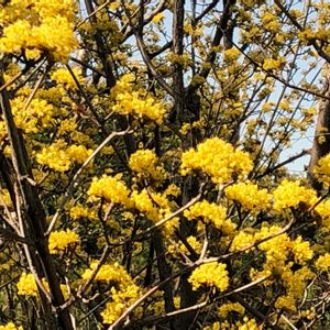 🌲山茱萸🌲 ソメイヨシノに負けず劣らずな大木に出会いました サンシュユ…とは 山にある茱萸(グミ)の事だそう そのグミが頻尿、滋養強壮に効くんだとか 日本に渡ってきた時に、薬効に注目されてそのままサンシュユと呼ばれたらしい でも、 牧野富太郎先生は、その花の美しさから 春黄金花(はるこがねばな)と呼んでいたとか 朝ドラ、らんまんはお花ファンにはたまらないですね〜ʚïɞ.•*¨*•.¸¸♬ 🌪️今日は、強風です!! 関東にも黄砂がやって来るらしい!! ヤバいっす!!!