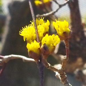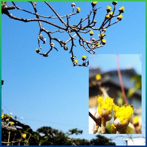 葉のない枝に黄色の花が咲いてます。