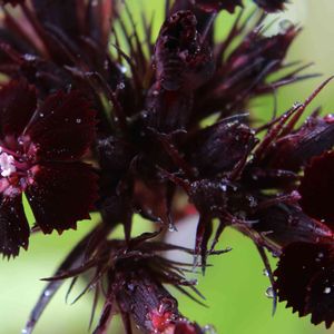 先月よく咲いたヒゲナデシコのブラックベアーよりも葉も花もブラック感強め Dianthus barbatus 'Monksilver Black' モンクシルバーブラック🐦⬛ 花のベルベットの質感と、シャープなヒゲがシックでお洒落❤︎結構お気に入り 25.6/11.7🌤️