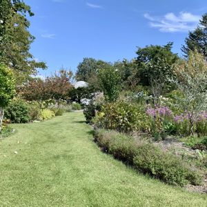 秋庭 秋空に蝶々やトンボが舞い グラス類が風にそよいでいる 近くの田んぼから稲の切り株の匂い 秋だわぁ! ④友人3人が庭仕事を手伝ってくれた ありがとう 助かったわ!