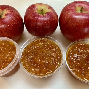 りんごアラカルト 果物王国.信州ですもの☝️ ①りんごジャム(梅ジャムとミックスしました) ②煮りんご ③アップルパイ ④花友さんからのりんご