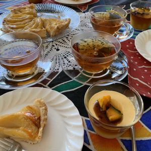 子魔女とティータイム アップルパイ カボチャプリン ハーブティー 暖かい昼下がり 庭でお茶しましょう☕️