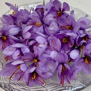 サフラン 庭のサフランを摘んできたわ なんて優しい色🟣 なんて優しい香り💜 早速サフランライスにします (なんてことはないカレーのご飯です)