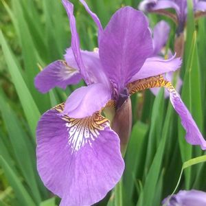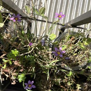 白のシラン、沢山咲きました。🤍💚 緑色の葉に白のお花が、涼しそうです。🤍💚 姉が別けてくれました。 ③紫色系のシランも咲いています。💜 こちらは、沢山増えて困っていると言ったら、留守に主人が抜いてしまいました。 主人の友人からのお花なんです。 でも少し残っていて、咲いています。 これから、又増えるでしょうから、丁度良いです。 ④花瓶に挿して見ました。 しっかりアップにすると、可愛いお花ですね。😍🤍💜 ⑤ニワゼキショウが、沢山咲いています。💜 小さな可愛いお花です。 沢山増えるので、鉢植えの中にだけ、育てています。😂 種が付くと、切ってしまいます。 でも、毎年生えてきます。😊 宿根草ですね。 葉は、アヤメのように、平たい葉です。