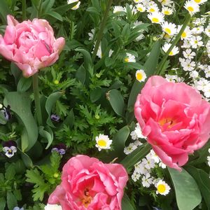 こんばんは😃 記録の為に投稿します。 八重チューリップ🌷 フォックストロットが咲いていました。💗 ②のお花を植えました。 咲いたお花①です。 カ○ンズホームに、騙された気分です。😢 ③3年目のチューリップです。 赤の球根、昨年取れたの10球根位植えました。 なんとこの2球根しか咲きませんでした。😢 今年は、昨年取れた球根沢山植えたのに、咲きませんでした。 昨年は、同じような球根でも、ちゃんと咲きました。🌷 何故でしょう?🤔 ④ノースポール、1株ですが、沢山咲いています。🌻🌿 ⑤こぼれ種の多分ペチュニアです。咲きはじめました。 この色どこからか? 飛んで来たのかな?💠🌀