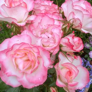 バラニコル、沢山咲いていました。💗 この枝だけは、沢山咲きました。💞 新しいシュートだからかな? 他の枝は、1輪から3輪位でした。 縁取りがピンクで可愛いバラです。💗 ④バラフリージァ 咲き始め雨で撮影出来ず、 開いています。 とても香りの良いバラです。 地植え、悲しい事に1番花1輪しか咲きませんでした。😢