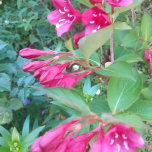 今日のお花 「ウツギ」 タニウツギ(谷空木)が、咲いていました。🌼 風で揺れて、なかなか良い時に、撮影出来ませんでした。 これも、昔、主人の母にいただきました。🌿 ③チェリーセイジ だいぶ前に、お隣の奥さんに、挿し木したのいただきました。🌼 今もっと、花茎伸びて咲いています。 ④カスミソウ一重 ピンクで可愛いカスミソウです。 アレンジで良く使われる白のカスミソウより、お花大きいです。💠 こぼれ種で1本生えてくれました。 前に、姉に苗貰ったカスミソウ、なんとか毎年生えてくれます。😂 1本でも、楽しめました。🎶