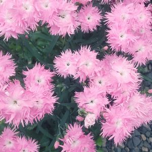ナデシコ 大輪ナデシコスープラピンク これも1株です。🌸💗 2021年秋にお迎えしました。 沢山咲いているので、 お花の大きさは、普通のに近い位です。 5月から咲きはじめ、まだ、沢山咲いています。 春先に、1輪2輪咲く時は、 直径5センチ位のお花咲く時も有ります。🌸 ②カーネーション ポットカーネーションバンビーノ 2022年春に買いました。 ずっと咲いてくれています。🌸💗 ③④シナワスレナグサ (シノグロッサム) 白と水色、咲きました。🤍💙 10年位前から、こぼれ種で咲いています。 年により、ピンクのお花咲く時も有ります。💗 大きく育つので、切り花にも出来ます。 小さい時は、ワスレナグサに葉も良く似ています。 もう直ぐ、種が実ります。 洋服に付くので、必要な分だけで、後は、処分します。 ⑤ビオラ まだ、このお花は、咲いています。 なぜか?沢山咲いてくるの遅かったビオラです。 5月から沢山咲きました。 そろそろ、終わりかな?🤔 今日は、2投稿失礼します。🙏 今月も、宜しくお願いします。🤗