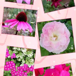 おはようございます✨ ピンク系のお花を集めてコラージュしてみました。 もう7月 暑いですが 今月も宜しくお願い致します。