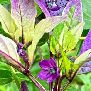 イマニワ 𖤣𖥧𖥣 。𖥧 𖧧𖤣𖥧𖥣 ☀️ ☁️ ☔️ 🌀🍃 29℃/25℃ 台風の影響で、 降ったり止んだり、風もかなり強く…まだ梅雨は開けてない⁈ 𖧷 ① 6/25に投稿したトルコキキョウが紫色になりました🟣 この子かなり長く咲き続けています。 ② エキナセア ‘プレーリー ブレイズ グリーン’ 大きいお花がちょっと苦手でしたが,皆さんの投稿で…. 私にとってこのお花は花びらが下向きに垂れて、ちょっと不思議な感じでした。 育ててみたくなり少し前にお迎えしました。 なかなかきっちり咲かずでしたが、 ようやくお目覚めです。 皆さんのお宅のエキナセアみたいにきれいに咲きません💧 ③ 2年目の斑入りランタナ•クリーム 華やかではないですが、 今年も優しげにボチボチ咲いています。 ④ 先日お話しした,息子からのお土産の種からの発芽 クララ 葉っぱ🌿だけはかなり大きく… 今年はお花が咲かなさそう。 お花 咲いてもあまり可愛くないかも 笑😆 ⑤ 3年目のマツリカ アラビアンジャスミン ちょっとだんだん花数少なめに… でもこの子 挿し木の成功率高いので、どんどん増やせます。