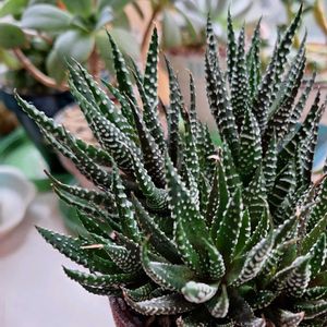 🏷️十二の日 参加します。 小さなハオルチア ミニマ💕 株分けしたものの1つが、2枚目のミニマです。 子株の1つに、1枚の葉っぱに白いラインが入っているものがあったので斑入り株かと期待していましたが、新芽はみんなみどりんでした。😅 でも、可愛いからいいことにします。😄💕