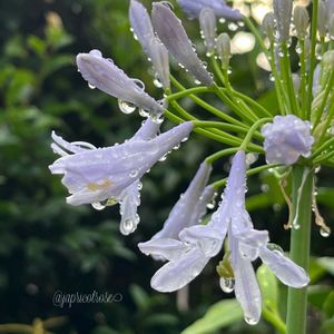 雨降りベースでしたが変わりやすいお天気で夕方には青空もでました。 雨が止んだ庭には恒例のキラキラ✨いっぱい🥰 アガパンサスが雫💧をたくさん纏って透き通るように美しかったです🩵