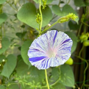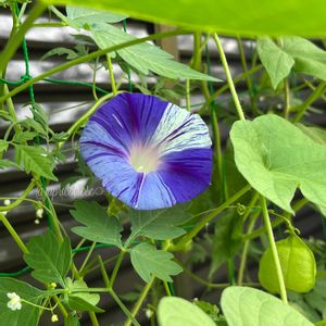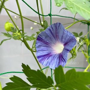 おはようございます😃 曇っていますが素晴らしく涼しい朝です♪ 昨夜は久しぶりにエアコン無しでぐっすり朝まで寝られました。 涼しいことの幸せ🥰 日中も気温上がらないみたいなので外でも元気に過ごせそうです。 草取りしよう! 今日のお花 朝顔✨ グリーンカーテンの江戸絞りはひとつひとつ花の表情が違っていて楽しいです😊 二色あるのか今朝開いていた花のひとつは水色の地に紫の絞り💜 これも良いな🥰
