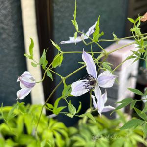 今朝の庭から クレマチス流星✨がまた咲き始めました♪ 色が薄くて小さめの花ですが、涼しげで可愛いです🥰