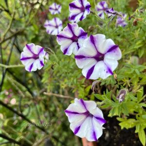 おはようございます😃 今朝も涼しいので草取りしてました。 サボっていたのでなかなか終わりが見えません😅 もう少し頑張ります。 今朝の庭から 朝顔 江戸絞り✨ 今日のはほぼ紫にかすかに淡い絞りが入ってます🥰 白地のほうはほぼ白かったり色々な模様があります🤍 なんだか毎日朝顔観察記録ですね😁