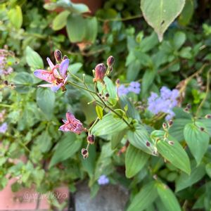 おはようございます😃 綺麗な青空が広がっています♪ 今日も元気に❣️ 今朝の庭から ホトトギスとユーパトリウムの秋のブルー系コラボ🩵✨ 昨日は種蒔きデーでした。 みんな大きくなーれ🌱