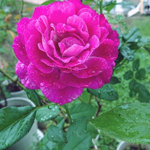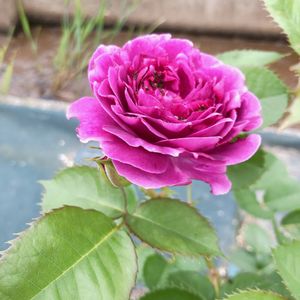 おはようございます☔ バラ ワイルドブルーヨンダー 台風前に咲きました💗💗💗