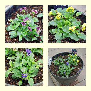 ミルフル (10/20) ミルフル3苗、入手。 今年は、12号鉢にまとめて10/17に植えつけました。 色違いの苗なので、大きくなったときが楽しみです。🌸🌸🌸