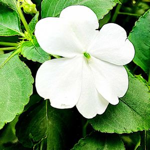 純白のハート型の花弁に中心のグリーンのワンポイントが、より一層清廉とした白さを引き立たせていた、「インパチェンス」でおはようございます🍃🤍💚🤍🍃 "インパチェンス"は、タンザニア等の熱帯アフリカ原産のツリフネソウ科の植物🇹🇿 特徴的な花名は、熟した種子に触れると弾けて飛び散る性質があり(=Impatiens」(im-:否定、patiens:忍耐強い)、という学名の由来からきているそうですね😃💡 近所のコミュニティ花壇などでも、白以外に赤やピンク、オレンジなどの多彩な色のインパチェンスをお見かけ致しますが、花型も一重だけでなく半八重咲きや八重咲きがあることがこの度わかりました🩷🧡❤️ ー花言葉は、「強い個性」、「豊かさ」…他。