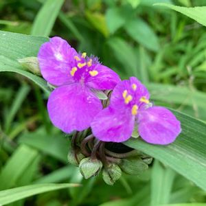 静かな茂みの中でひっそりと、寄り添うように咲いていた、「紫露草(ムラサキツユクサ)」でおはようございます✨🍃💟💟🍃✨ 葉の下にしっかりと、未来に咲く沢山の蕾も待機していました☺️❣ "紫露草"は、北アメリカ原産の多年草🇺🇲 耐寒性・耐暑性共に強く、日陰から眩しい日向まで幅広い環境に適応し、こぼれ種でもよく増えて野生化してゆきます🌿🌿🌿 …台風時期が近づいて参りました。暑さのピークもようやく過ぎてくれたのでしょうか。 白露の中でしっとりと咲く露草を楽しめる季節が、ようやく近づいて参りました🙏💞✨ …早朝のキッチンで、家族のお弁当支度をしながら聴く今朝のBGMは、Bill Evansの《Very Early》の調べと共にゆったりと〜🎶🎹🎶 https://youtu.be/T2BmXGcJjCE?si=-rFbbf_V0n7pQTPe ー花言葉は、「ひとときの幸せ」、「快活」…他