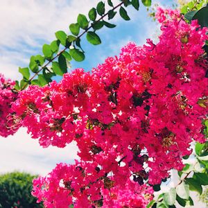 天を仰ぐように伸びやかに咲く、鮮やかなピンクの「百日紅(サルスベリ)」で、おはようございます❣ 9月最初の週末は、台風一過で再び晴れマークに☀️ "百日紅"は、中国南部原産のミソハギ科の落葉高木🇨🇳 花名の通り、夏から秋にかけておよそ100日間もの長い期間花が咲き続け、ピンク、白、紫等、枝先に集まるフリフリの花弁が観る者の心に優しい笑顔を届けてくれます🌸🌸🌸 …不意に吹き始めた風に、長く伸びた枝がザワザワッと揺れると、木陰に憩うように佇んでいた野鳥の群れが、一斉に天高く飛び立っていきました🍃🌳✨🕊🕊️🕊✨🌳🍃 スローモーションのように、緩やかな軌跡を描きながら羽ばたく波が空にゆっくりと広がって、次第に黒い小さな点となって消えてゆくまで見届けました🥰 小さな感動は、特別な場所へ行かなくても何気ない私達の日常の中に潜んでいる🌈✨ 改めてそう感じた瞬間でした💞 ー花言葉は、「愛嬌」、「あなたを信じる」…他。