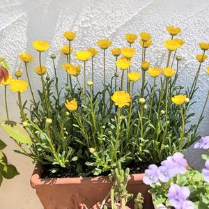 『ラナンキュラス ラックス』 📷玄関ポーチ🌿にて☺ 今年もラックスたちが無事開花しました(,,ò᎑ó,,)و ! ピュタロスがウラノスよりも株が充実してきました👀ギャクテン! 今年のウラノスの花は小ぶりです(⁎˃ᴗ˂)🍊